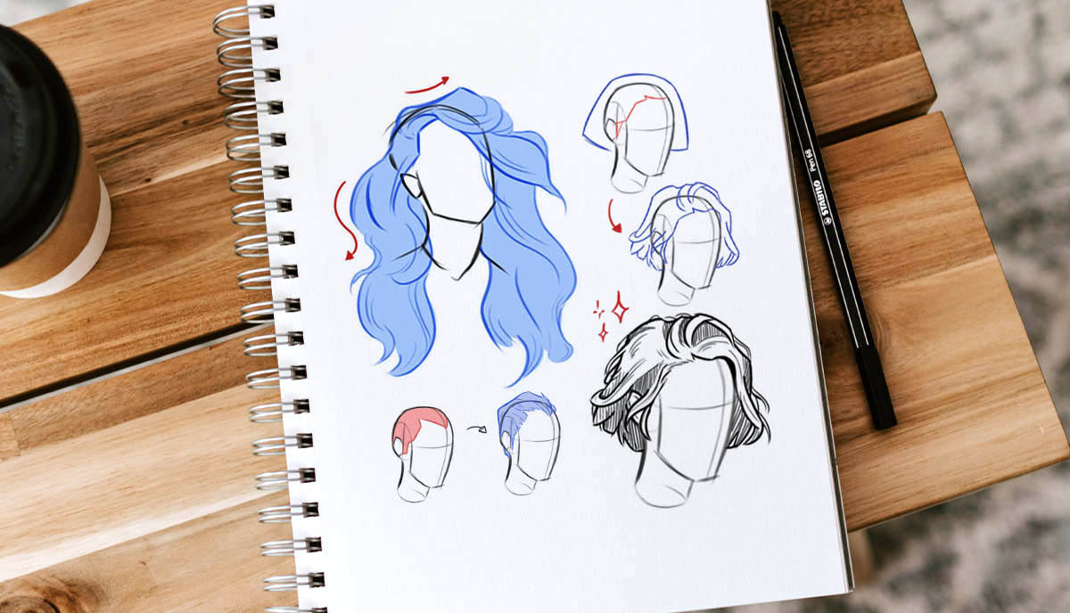 Drawing hair can be quite easy when you know the steps to follow. Usually, we want to start directly with the end: the details. And that’s often why we end up with flat drawings and hair that looks like spaghetti.